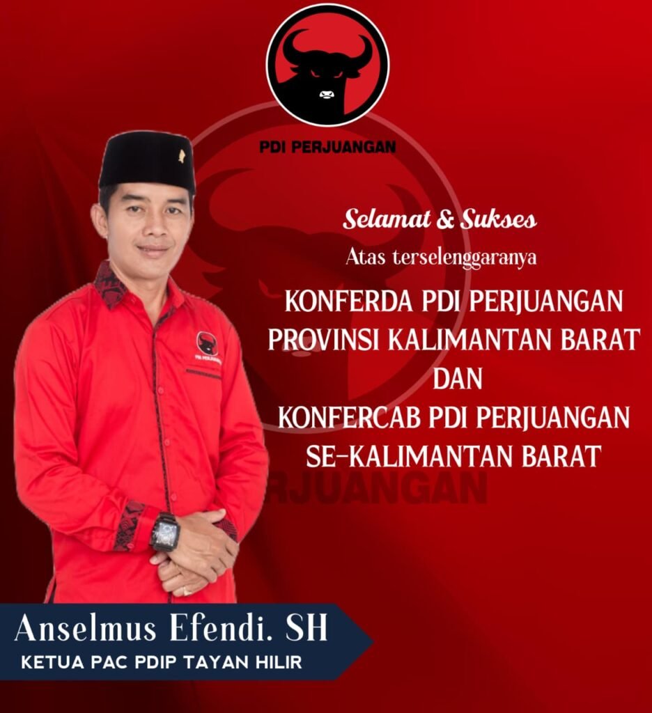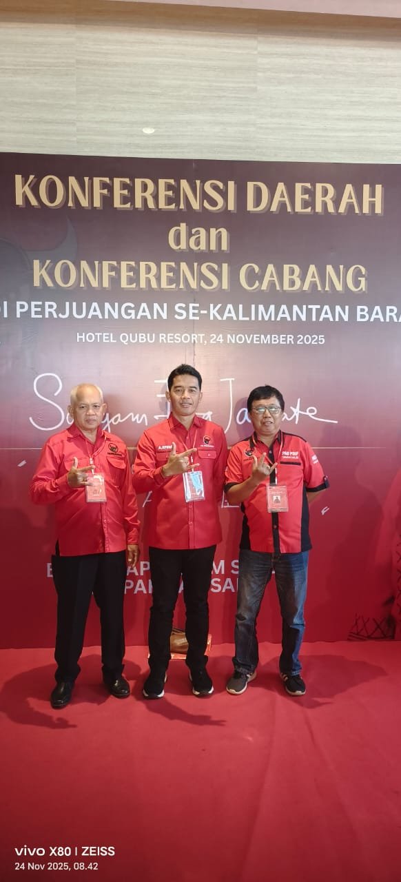 Pontianak, Senin, 24 Nopember 2025. Bapak Anselmus Efendi, SH selaku Ketua PAC PDI Perjuangan Tayan sekaligus Anggota DPRD Kabupaten Sanggau menyampaikan ucapan Selamat dan Sukses atas terselenggaranya Konferensi Daerah (Konferda) PDI Perjuangan Provinsi Kalimantan Barat dan Konferensi Cabang (Konfercab) PDI Perjuangan se-Kalimantan Barat yang dilaksanakan di Kota Pontianak.