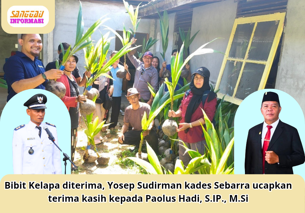 Sebarra, Kamis 11 Desember 2025. Kepala Desa Sebarra, Bapak Yosep Sudirman, menyampaikan apresiasi yang setinggi-tingginya atas bantuan bibit kelapa sebanyak 3.100 bibit yang dialokasikan untuk Desa Sebarra. Bantuan ini akan segera didistribusikan kepada 30 Kelompok Tani (Poktan) yang ada di wilayah desa sebagai bagian dari upaya peningkatan ketahanan pangan dan produktivitas perkebunan masyarakat.