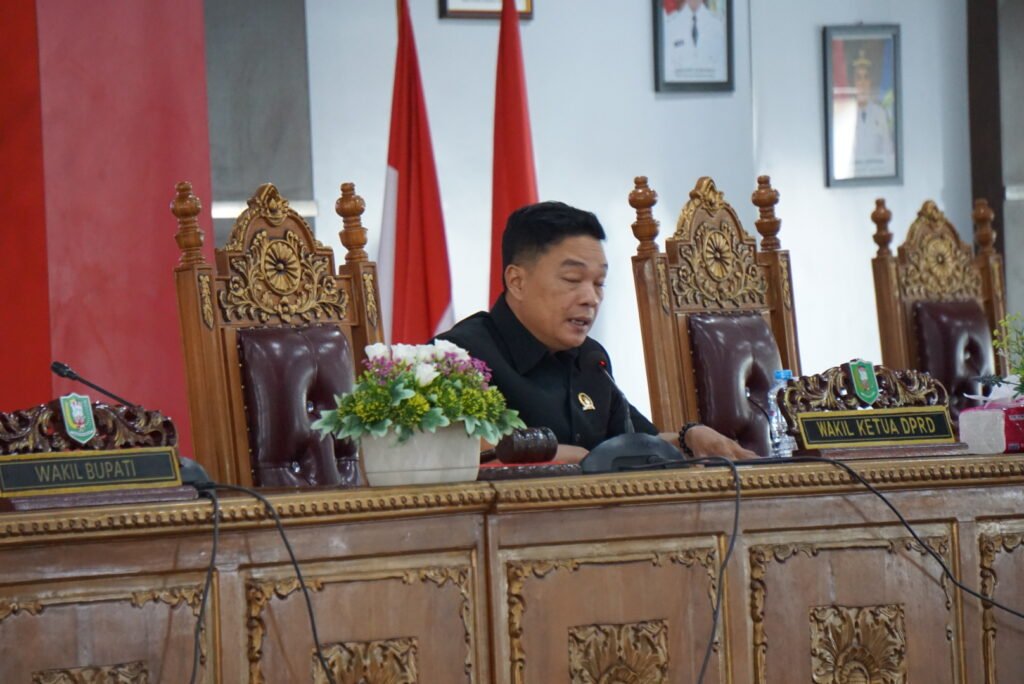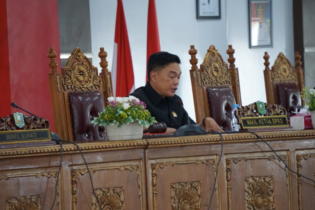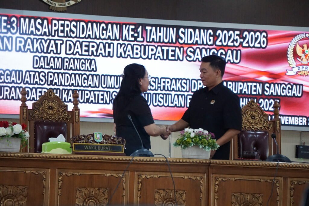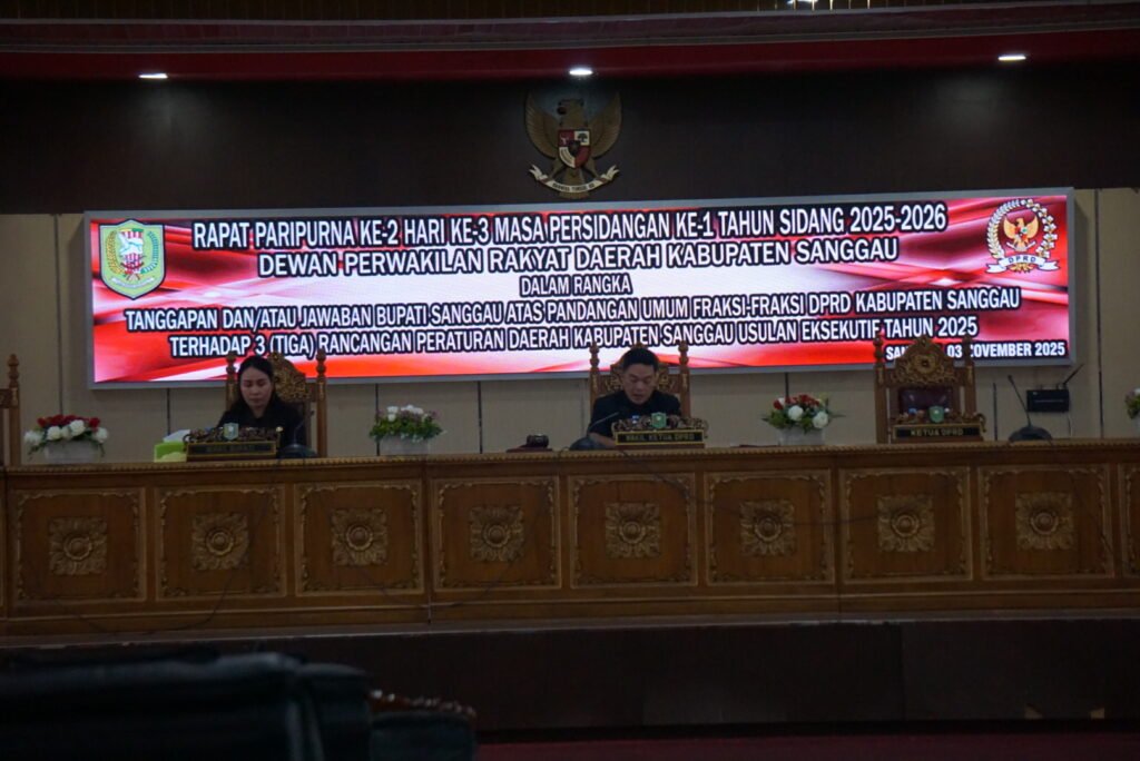 Sanggau, 3 November 2025 – Pemerintah Kabupaten Sanggau melalui Wakil Bupati Sanggau, bu Susana Herpena, S.Sos., MH., menyampaikan Tanggapan dan Jawaban Bupati Sanggau atas Pandangan Umum Fraksi-fraksi DPRD Kabupaten Sanggau terhadap tiga Rancangan Peraturan Daerah (Raperda) Usulan Eksekutif Tahun 2025 dalam rapat paripurna yang digelar di Gedung DPRD Kabupaten Sanggau, Senin (3/11/2025).