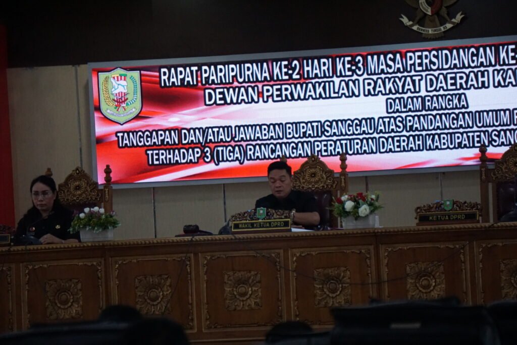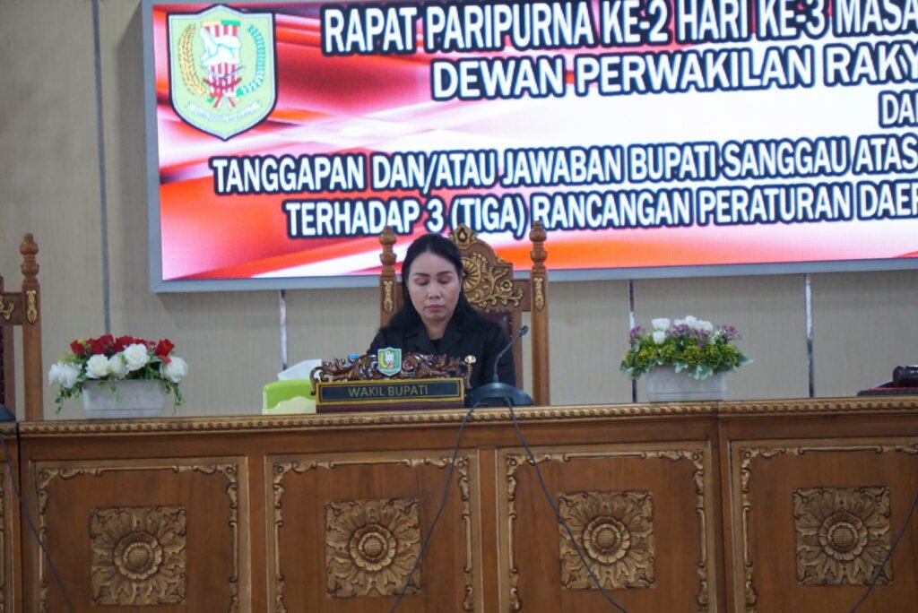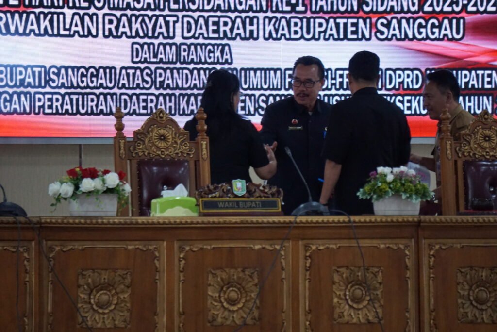 Dalam sambutannya, Wakil Bupati menyampaikan apresiasi dan terima kasih kepada seluruh fraksi DPRD yang telah memberikan tanggapan, saran, masukan, dan kritik membangun terhadap tiga Raperda yang diajukan pemerintah daerah. Menurutnya, pandangan umum yang disampaikan masing-masing fraksi menunjukkan kedalaman analisis dan komitmen kuat legislatif dalam mengawal jalannya pemerintahan dan pembangunan di Kabupaten Sanggau.