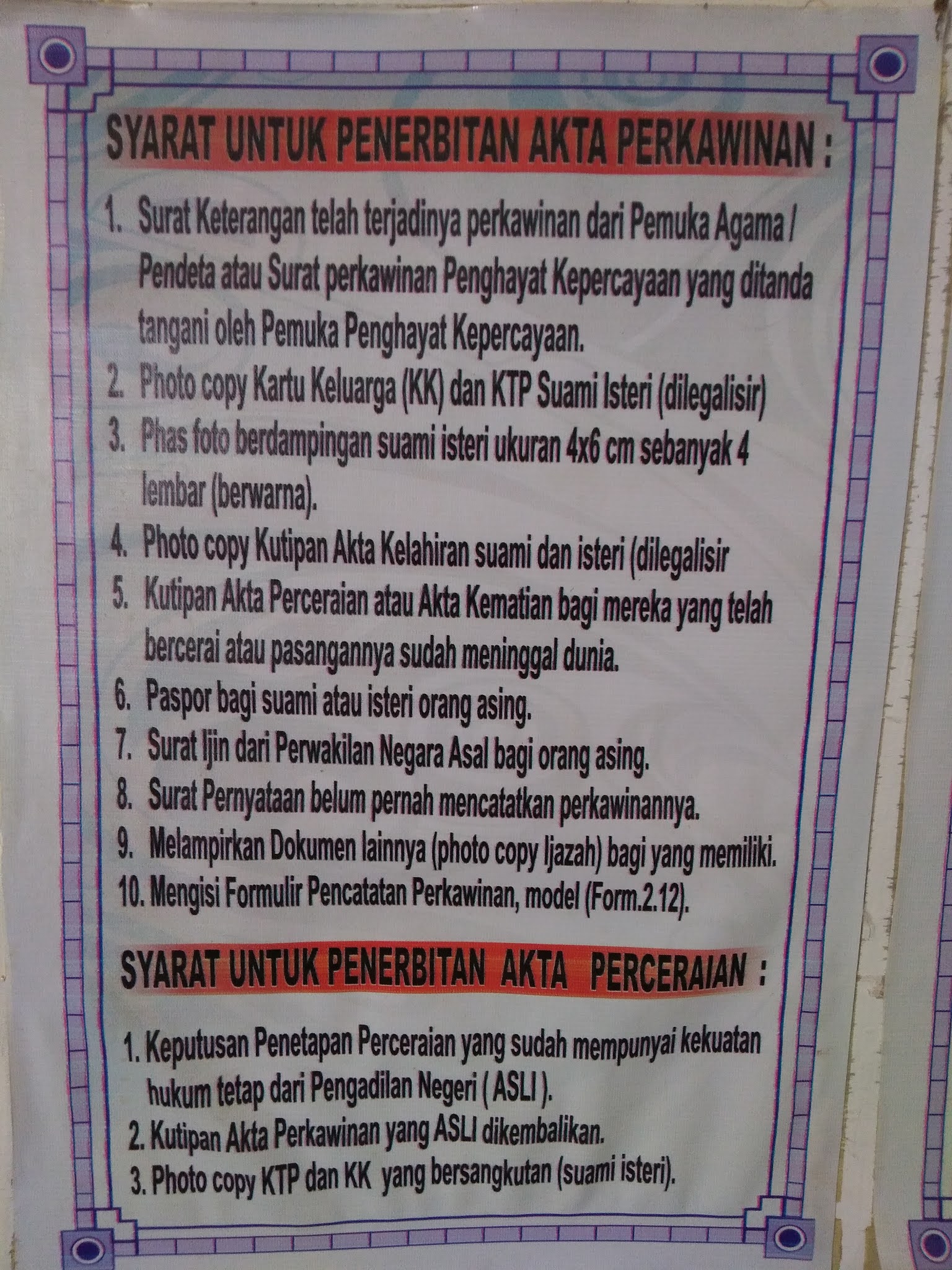 Akta Nikah sangat diperlukan untuk status legalitas anak. Akta nikah adalah dokumen pernikahan yang diakui negara. Syarat untuk pembuatan akta nikah adalah: