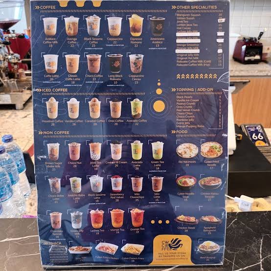 Tidak hanya menyajikan kopi berkualitas, CW Coffee Sanggau juga menawarkan berbagai varian menu seperti latte, cappuccino, americano, hingga manual brew untuk para penikmat kopi sejati. Bagi pengunjung yang tidak mengonsumsi kopi, tersedia pilihan minuman non-coffee seperti matcha, cokelat, serta signature drink yang menjadi favorit banyak pelanggan. Keistimewaan CW Coffee terletak pada penggunaan bahan baku premium dan racikan barista berpengalaman sehingga setiap sajian memiliki karakter rasa yang kuat dan memuaskan.
