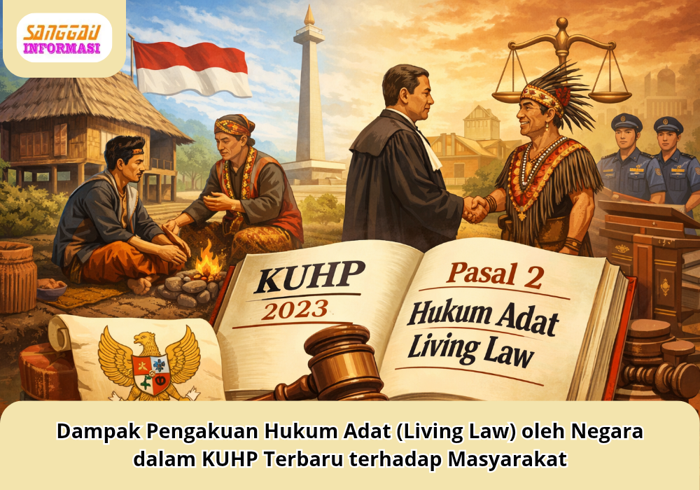 Sanggauinformasi.com. Pada 2 Januari 2026, Kitab Undang-Undang Hukum Pidana (KUHP) versi terbaru secara resmi mulai berlaku di Indonesia, menggantikan KUHP lama yang berasal dari masa kolonial. Salah satu hal penting yang diatur adalah pengakuan terhadap hukum yang hidup di masyarakat (living law), termasuk sejumlah norma hukum adat yang selama ini tumbuh dan dipatuhi secara turun-temurun dalam komunitas lokal. Ketentuan ini menjadi sebuah inovasi besar dalam sistem hukum pidana nasional dan berdampak langsung bagi masyarakat luas. (jurnal.anfa.co.id)