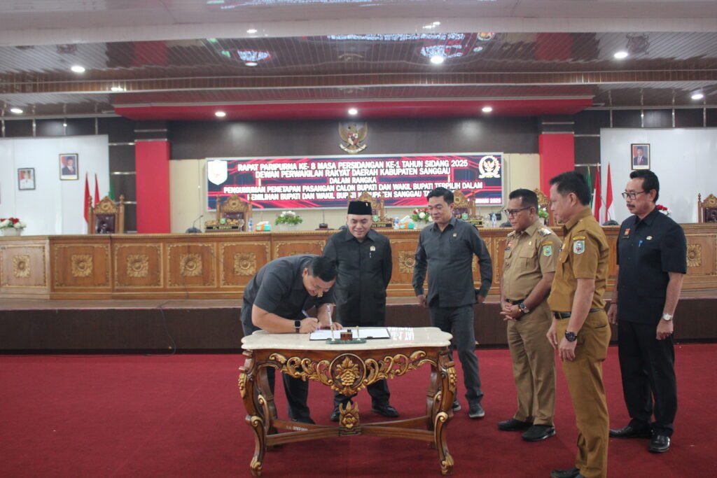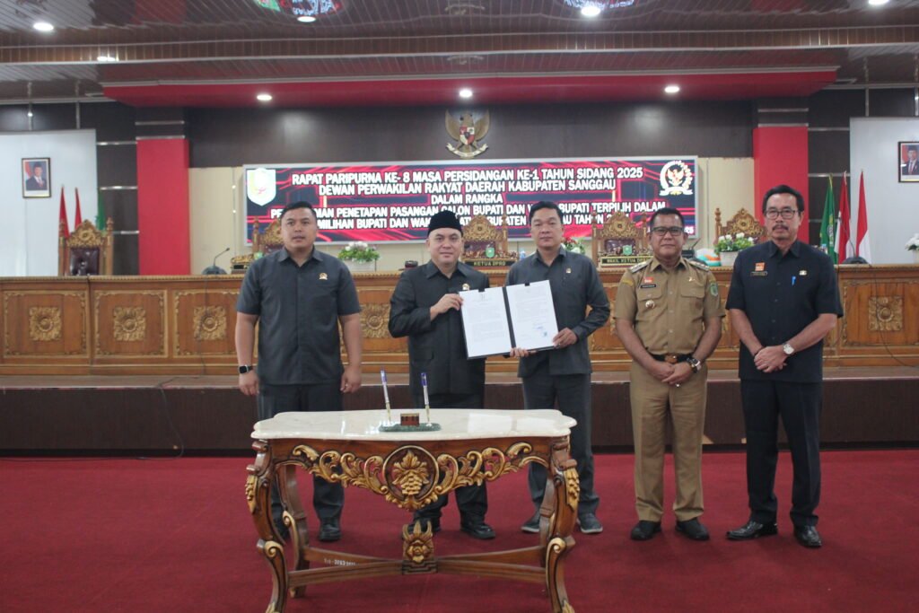Dalam rapat paripurna yang berlangsung pada Selasa, 14 Januari 2025, di gedung DPRD Kabupaten Sanggau, telah diumumkan penetapan pasangan Yohanes Ontot dan Susana Herpena (YOSH) sebagai Bupati dan Wakil Bupati Sanggau terpilih untuk periode 2025-2030.