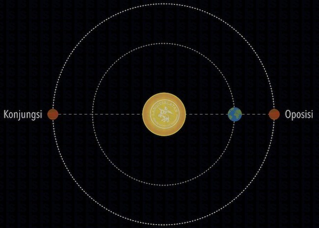 Bosscha menyampaikan juga konjungsi Bulan-Mars akan berlangsung pada Jumat (19/2), pukul 18.00 WIB atau kala Matahari terbenam hingga tengah malam. Bulan dan Mars yang sejajar dekat ditemani oleh Bintang Pleiades, gugus bintang yang akan tampak bersinar dengan warna biru terangnya. Ketiga benda langit ini akan membentuk formasi segitiga di langit bagian barat. Waktu terbaik untuk mengamatinya adalah mulai Matahari terbenam hingga tengah malam.