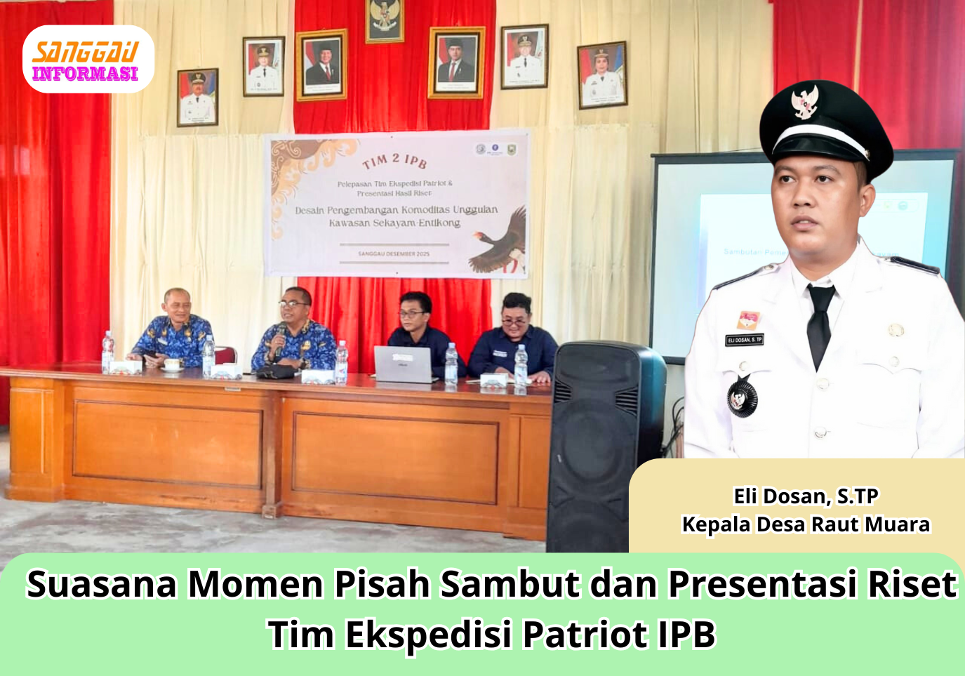 Sanggauinformasi.com. Entikong, Selasa, 2 Desember 2025 — Pemerintah Desa Raut Muara memberikan apresiasi kepada Tim Ekspedisi Patriot IPB (Institut Pertanian Bogor) Tim 2 yang telah menuntaskan tugas penelitian dan pendampingan di kawasan Sekayam–Entikong. Momentum pisah sambut yang dirangkai dengan presentasi riset “Desain Pengembangan Komoditas Unggulan” di Kantor Camat Entikong menjadi saat berharga untuk mengenang kontribusi besar tim mahasiswa dan peneliti IPB dalam membantu pemerintah desa membaca potensi wilayah secara lebih ilmiah dan terukur.