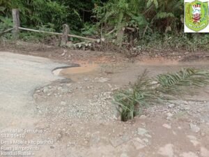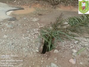 Desa Embala, Jumat, 30 Agustus 2024 – Kepala Desa Embala, Bapak Daniel, secara terbuka menyampaikan kepada masyarakat terkait kondisi jalan yang ambruk dan berlubang di Jalan Bodok-Meliau, tepatnya di Dusun Empaong, Desa Embala. Penyampaian ini dilakukan dengan didampingi oleh Bhabinkamtibmas, Bapak Ewal, bersama masyarakat lainnya.
