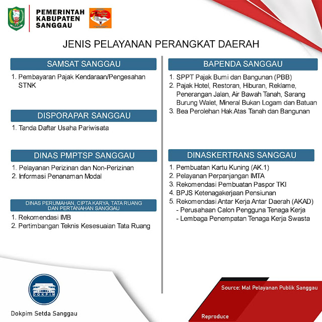 Kepala Dinas Penanaman Modal dan Pelayanan Terpadu Satu Pintu (DPM PTSP) Kabupaten Sanggau, Alipius menyampaikan, ada 248 jenis pelayanan yang tersedia di MPP, baik yag bersifat perizinan maupun non perizinan, dengan rincian pelayanan dari perangkat daerah Sanggau ada 143 jenis pelayanan, pelayanan dari perangkat daerah Provinsi Kalbar ada 1 jenis pelayanan, Instansi Vertikal ada 30 jenis pelayanan. BUMN/BUMD ada 73 jenis pelayanan. Sedangkan instansi yang bergabung dalam MPP ini sebanyak 19 instansi dengan rincian instansi vertikal sebanyak 5 instansi, 7 OPD, perangkat daerah Provinsi Kalbar 1 OPD dan BUMN/BUMD ada 6 instansi.