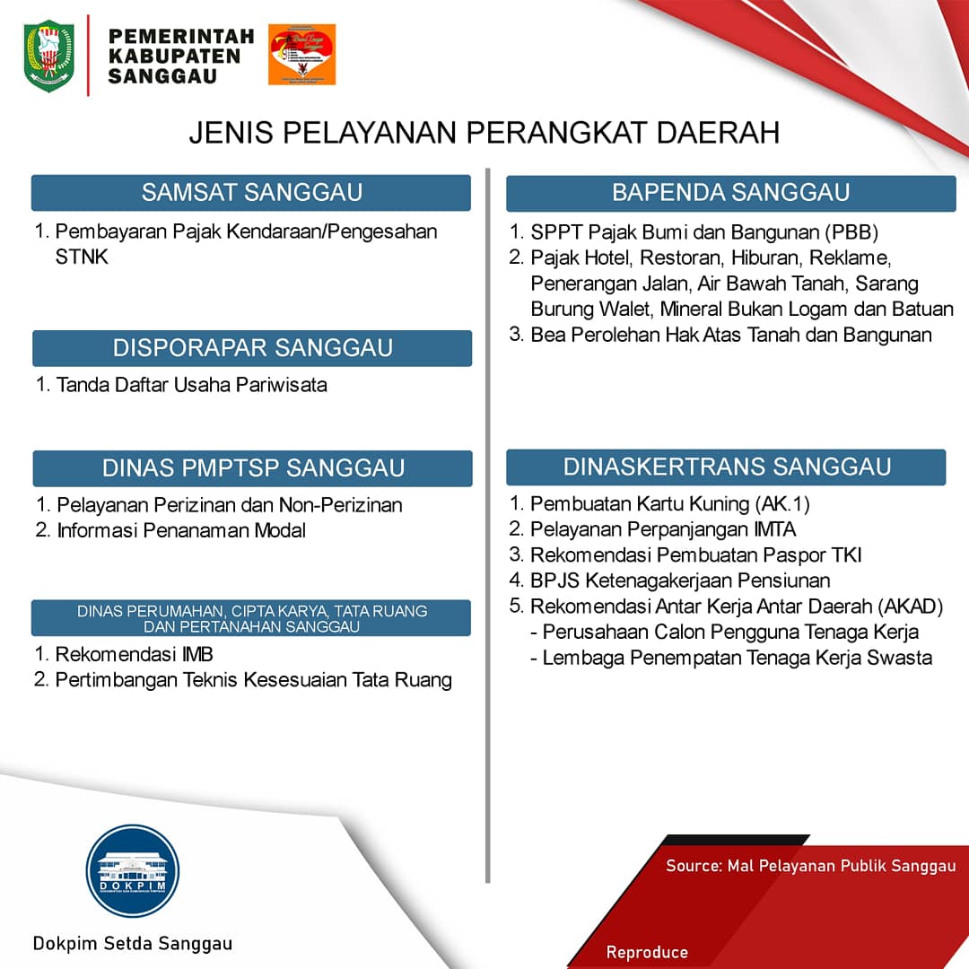 Kepala Dinas Penanaman Modal dan Pelayanan Terpadu Satu Pintu (DPM PTSP) Kabupaten Sanggau, Alipius menyampaikan, ada 248 jenis pelayanan yang tersedia di MPP, baik yag bersifat perizinan maupun non perizinan, dengan rincian pelayanan dari perangkat daerah Sanggau ada 143 jenis pelayanan, pelayanan dari perangkat daerah Provinsi Kalbar ada 1 jenis pelayanan, Instansi Vertikal ada 30 jenis pelayanan. BUMN/BUMD ada 73 jenis pelayanan. Sedangkan instansi yang bergabung dalam MPP ini sebanyak 19 instansi dengan rincian instansi vertikal sebanyak 5 instansi, 7 OPD, perangkat daerah Provinsi Kalbar 1 OPD dan BUMN/BUMD ada 6 instansi.