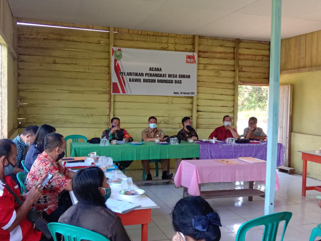Pelantikan dilaksanakan dan berlansung sesuai rencana di Balai dusun Munggu Das. Pelantikan ini dihadiri juga oleh Koramil yang diwakili Bintara Pembina Desa (Babinsa), Sugianto Babinsa desa subah dan Surgama sahar sekretaris kecamatan (Sekcam) Tayan Hilir.