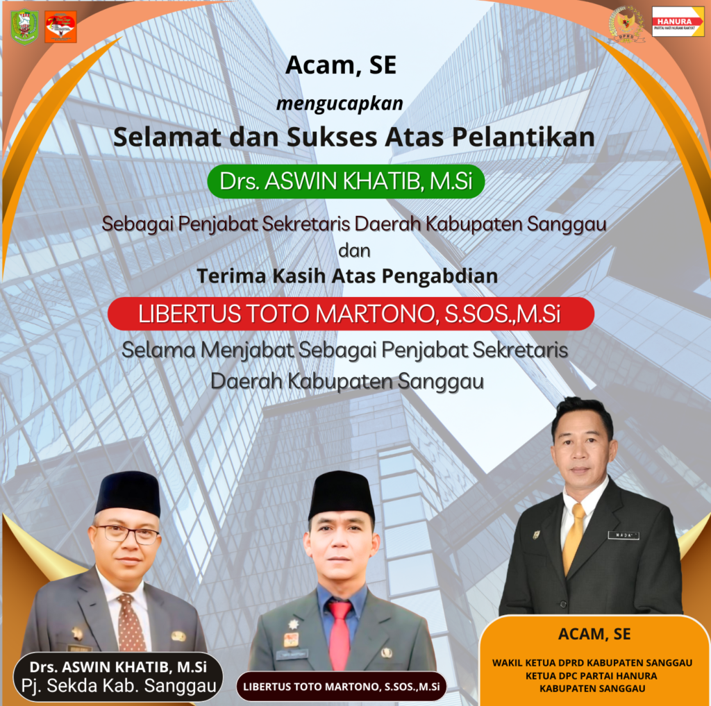 Aswin Khatib ditunjuk sebagai Pj Sekda Sanggau berdasarkan keputusan Gubernur Kalimantan Barat nomor 800.1.3.1/13/bkd, tanggal 29 Agustus 2024, dengan masa jabatan paling lama tiga bulan atau sampai dilantiknya pejabat definitif.