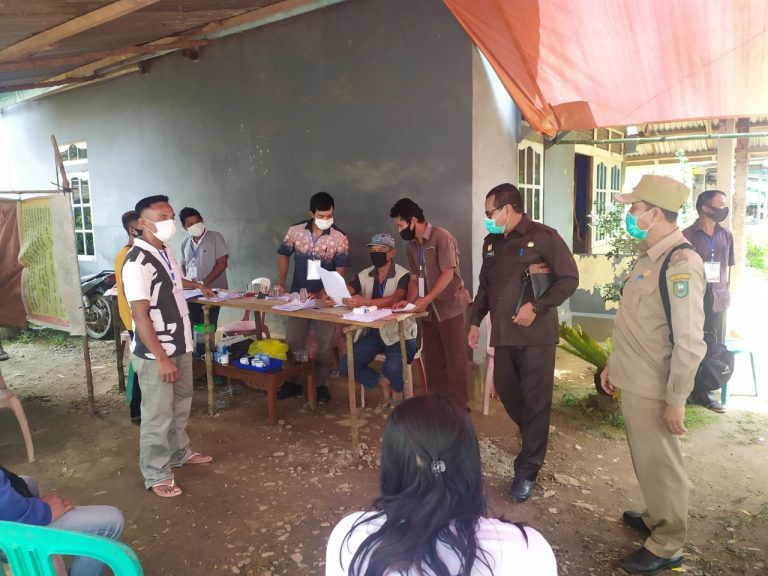 SANGGAU – Sekretaris Daerah Kabupaten Sanggau, Ir. Kukuh Triyatmaka, MM memantau langsung pelaksanaan pemungutan suara pemilihan kepala desa (Pilkades) serentak di sejumlah TPS di Kecamatan Tayan Hulu, Sabtu (19/12/2020).